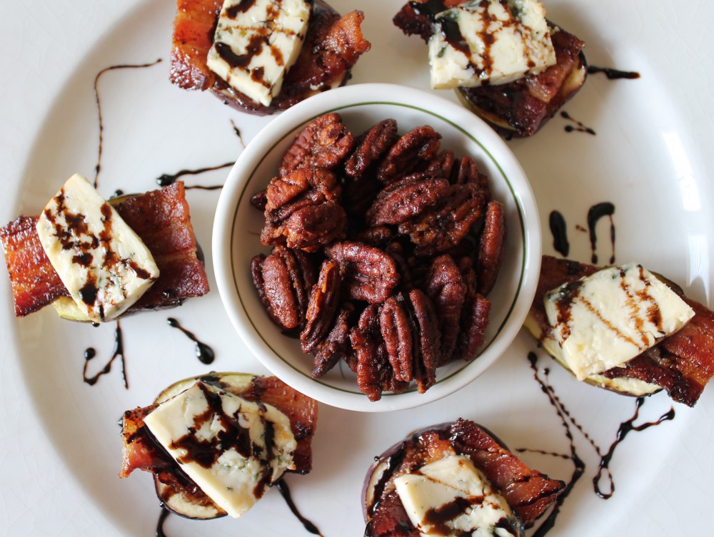 IMG_2521 ← Previous Next → Remove figs from oven. Place on a platter and drizzle with balsamic syrup. Serve with a side of chili spiced pecans.